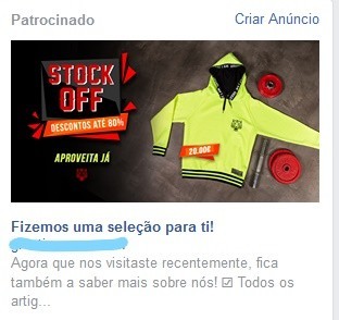 Fui ao site de uma marca de desporto. Mais tarde, no Facebook, tinha esta mensagem "patrocinada".